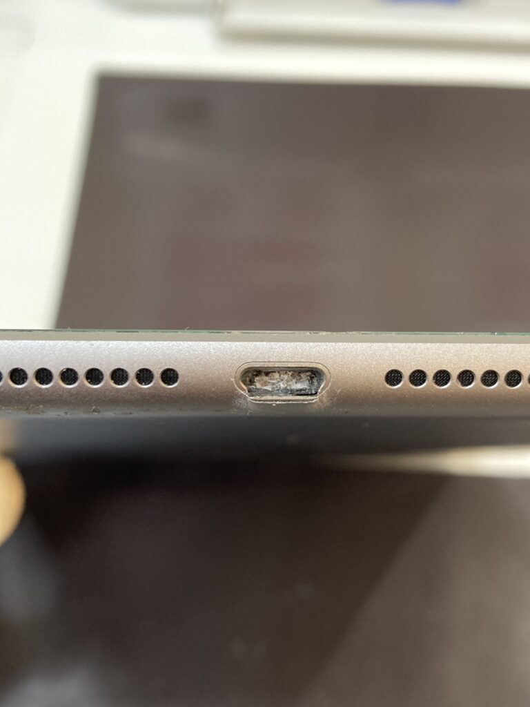 症状:充電ケーブルのコネクタ部分が、iPadの充電口に折れた状態で取り残された。