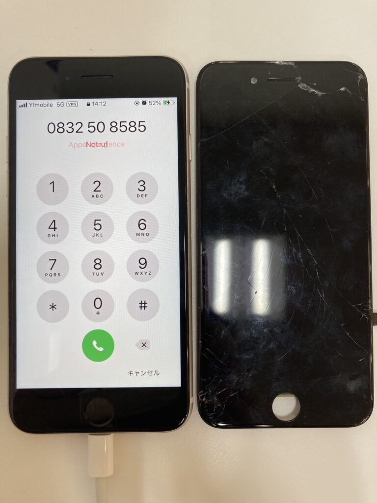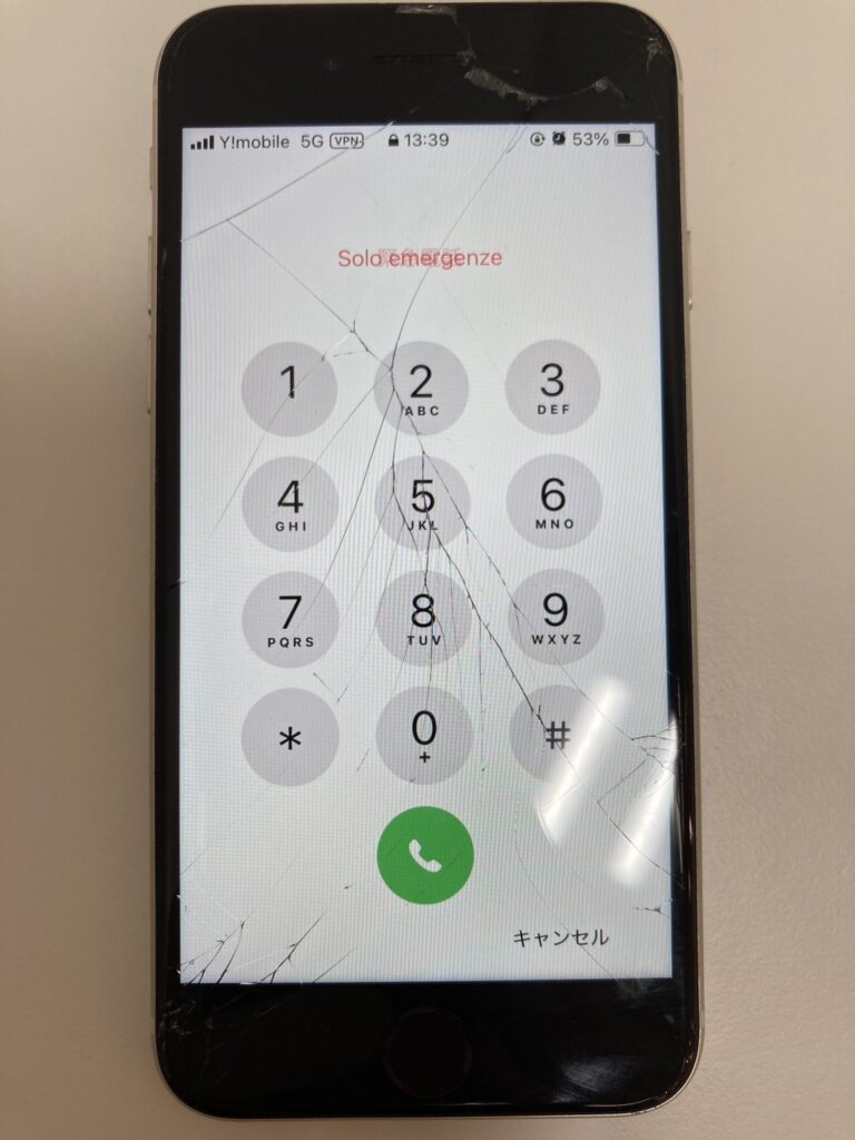 iPhone SE 3の画面全体に広がったヒビも、画面交換で改善しました。|スマップル下関店