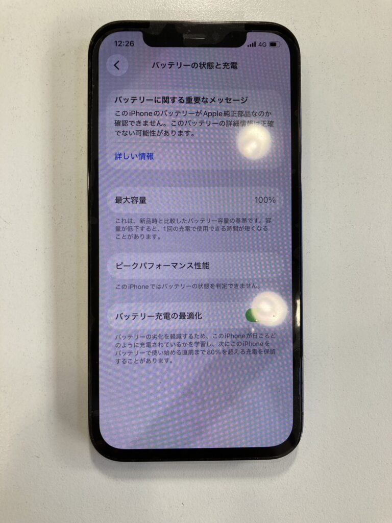 これは、バッテリー最大容量が80%以上ある状態でも表示されるときがあり、これが表示されても交換をしたほうが良いでしょう。